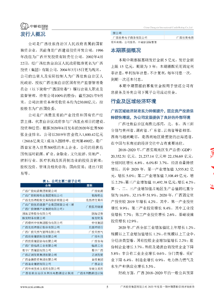 中诚信:广西投资集团有限公司2022年度第一期中期票据信用评级报告.pdf