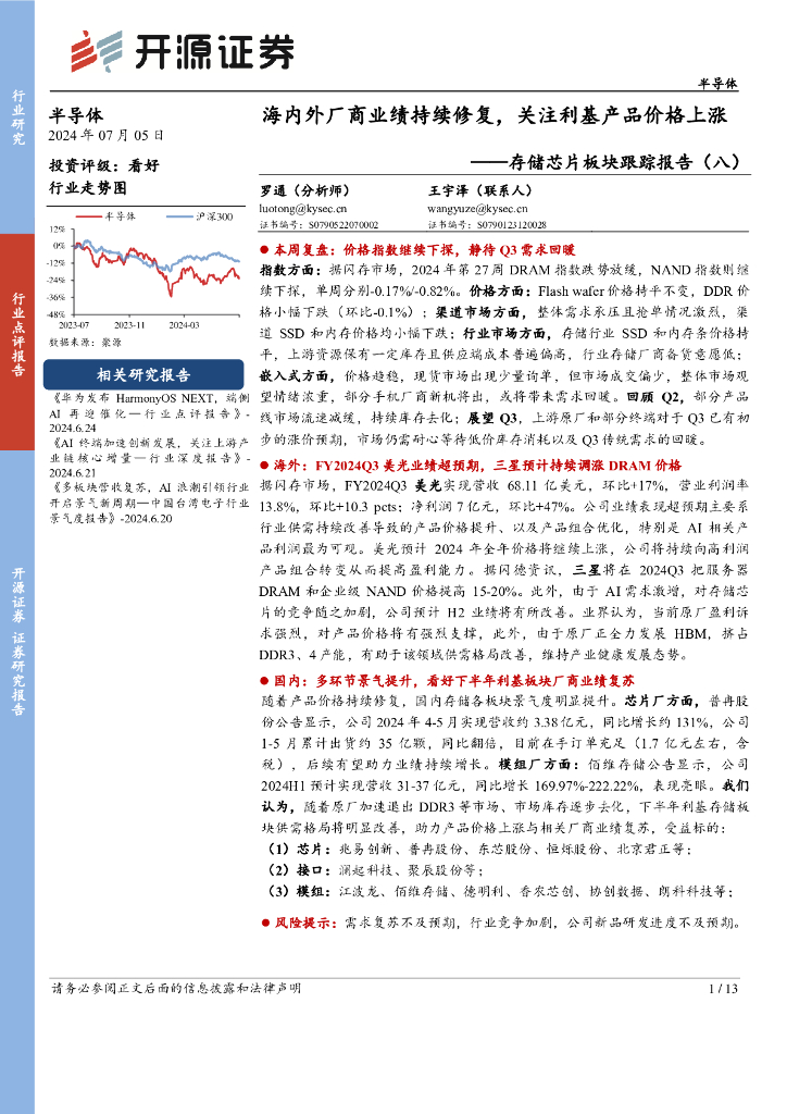 开源证券:存储芯片板块跟踪报告(八):海内外厂商业绩持续修复,关注利基产品价格上涨.pdf