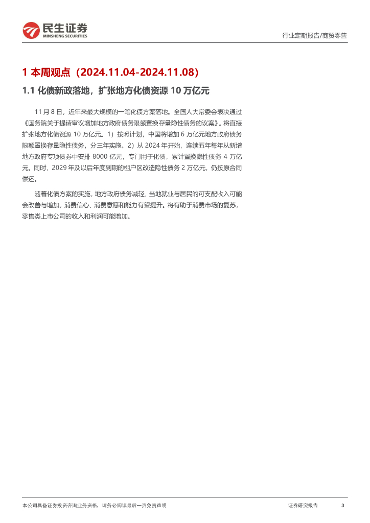 民生证券:零售周观点:化债新政落地有望修复消费信心,线下零售积极调改门店.pdf