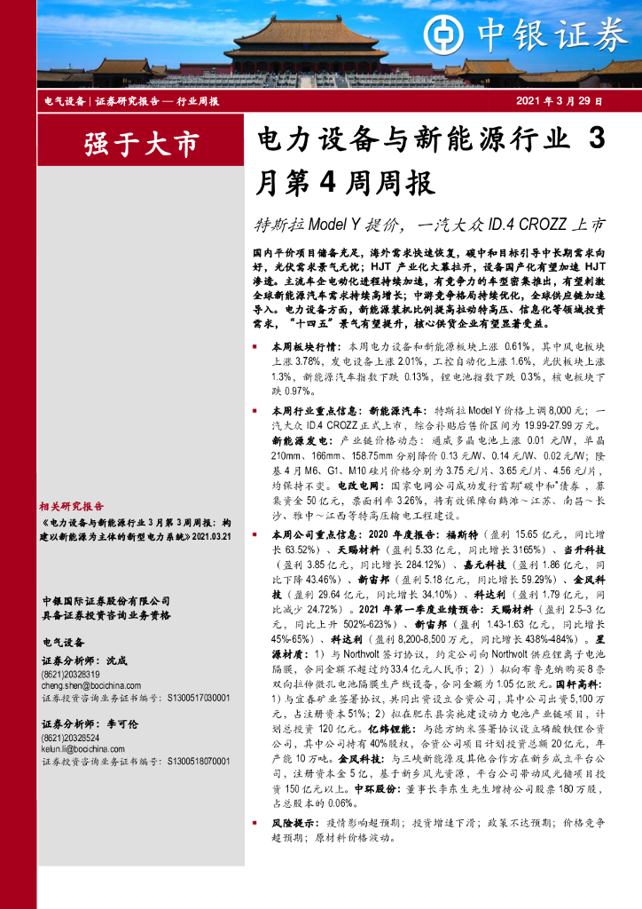 中银证券:电力设备与新能源行业3月第4周周报:特斯拉Model Y提价,一汽大众ID.4CROZZ上市.pdf