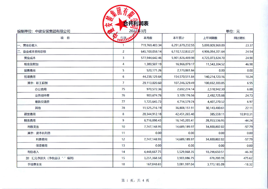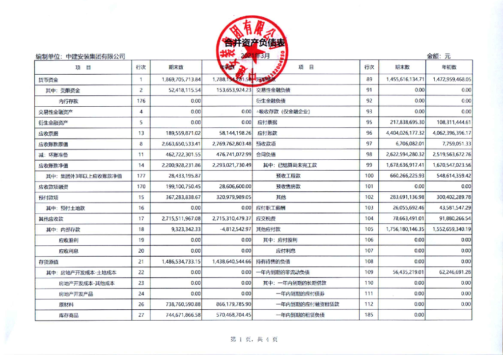中建安装集团有限公司2021年一季度未经审计合并及母公司财务报表.pdf