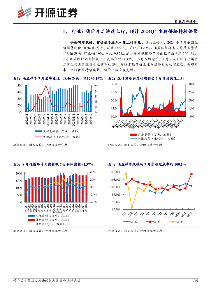 开源证券:农林牧渔行业点评报告:猪价开启快速上行,预计2024Q4生猪供给持续偏紧.pdf