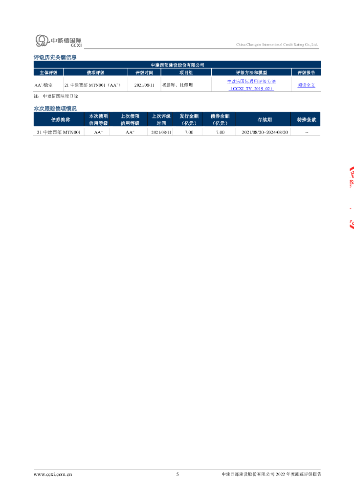 中诚信:中建西部建设股份有限公司2022年度跟踪评级报告.pdf