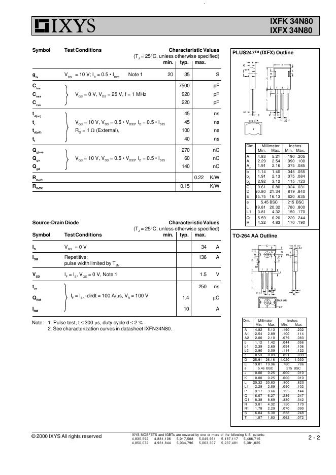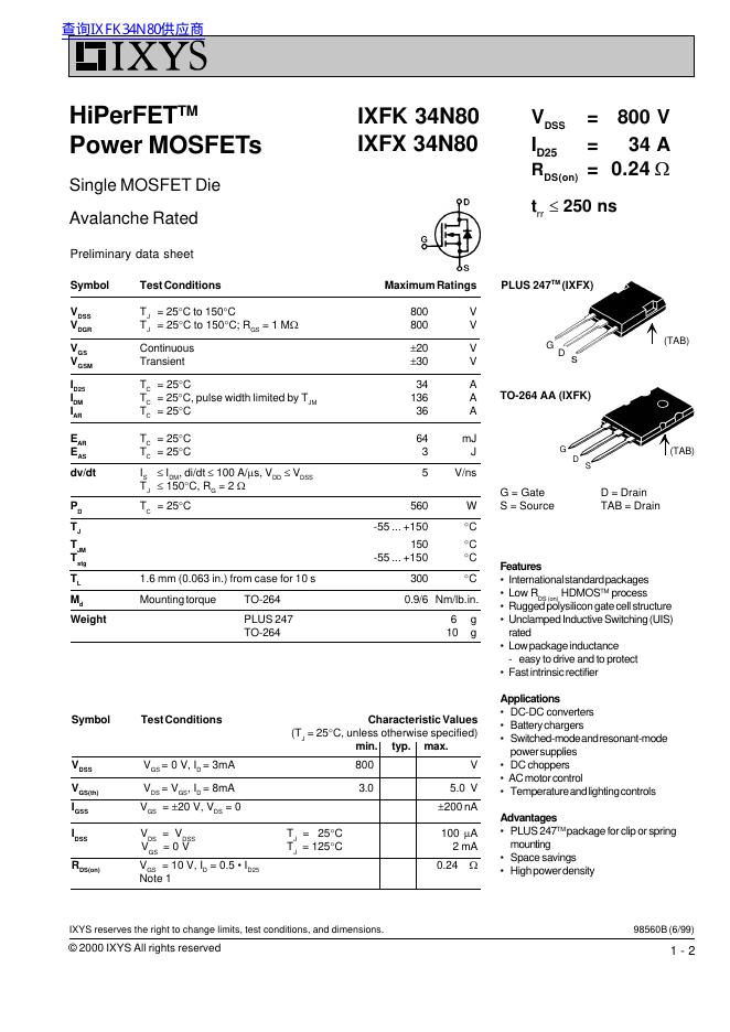 IXYS IXFK 34N80/IXFX 34N80 数据手册.pdf