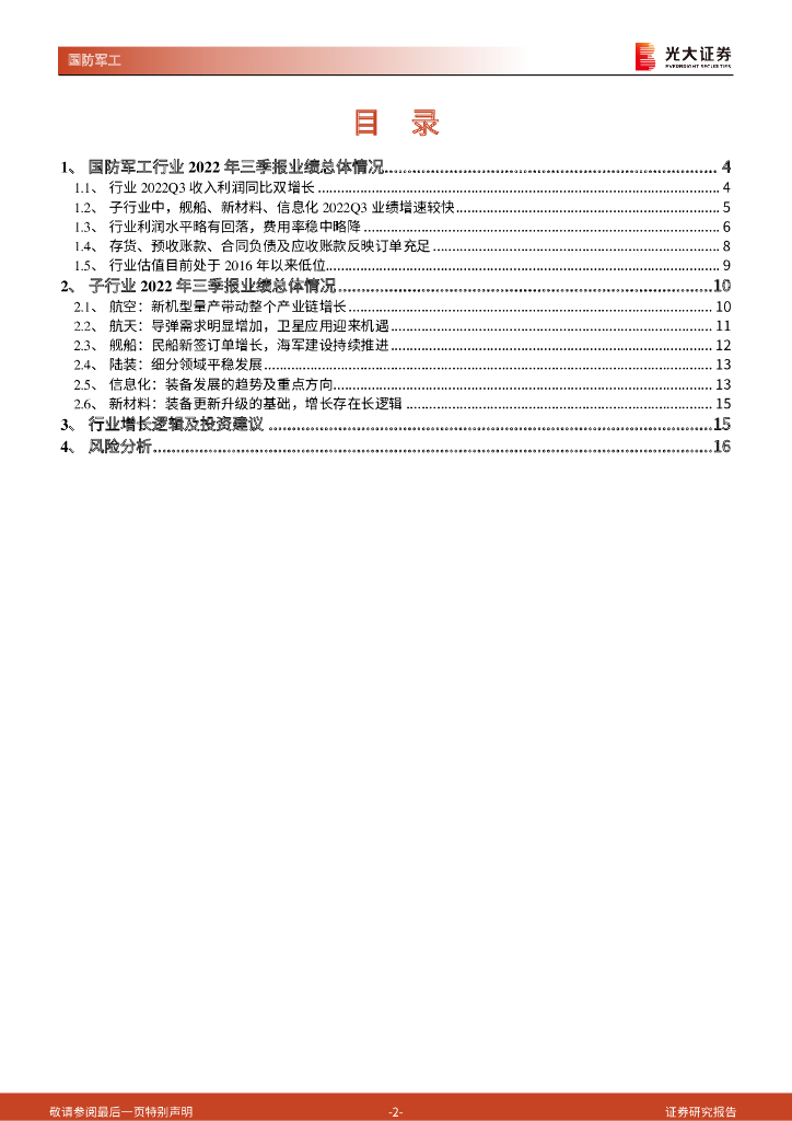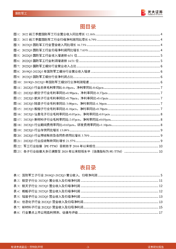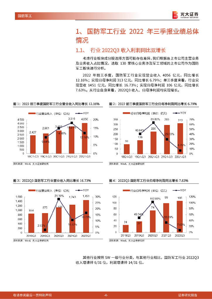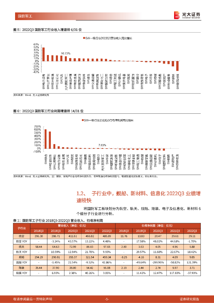 光大证券:军工行业2022年三季报业绩综述:营收盈利双增长,关注细分赛道增速分化.pdf