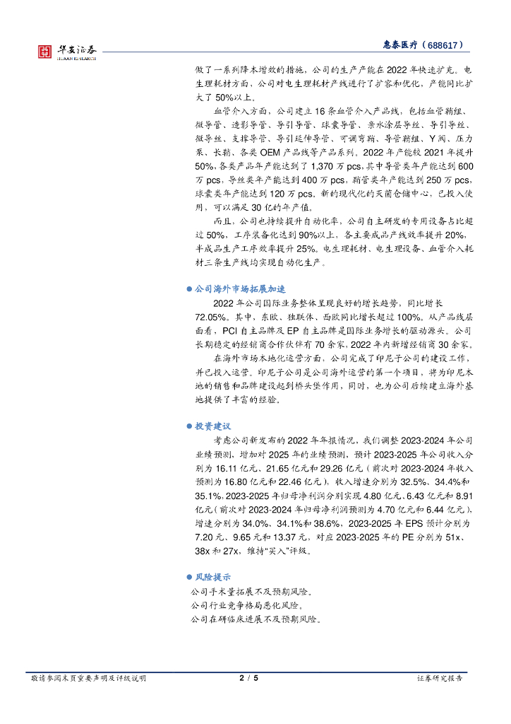 华安证券:惠泰医疗(688617)-2022年业绩符合预期,电生理板块看点丰富.pdf