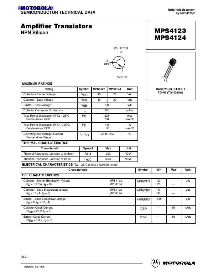 MOTOROLA Semiconductor MPS4123/MPS4124 数据手册.pdf