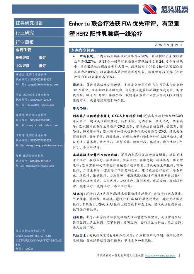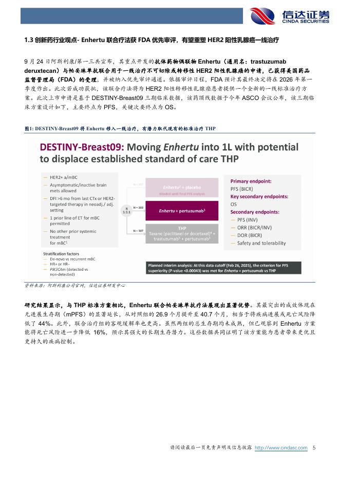信达证券:医药生物行业周报:Enhertu联合疗法获FDA优先审评,有望重塑HER2阳性乳腺癌一线治疗.pdf