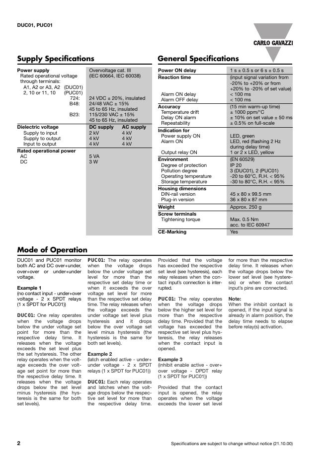 CARLO GAVAZZI DUC01, PUC01 数据手册.pdf