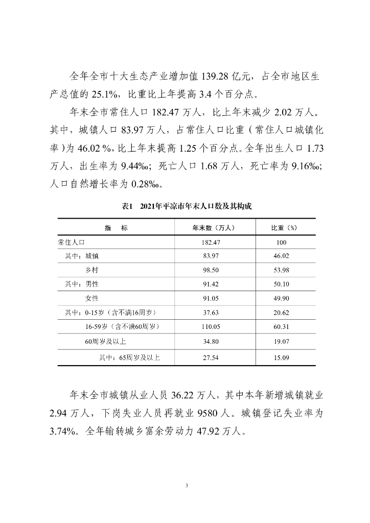平凉市2021年国民经济和社会发展统计公报.pdf