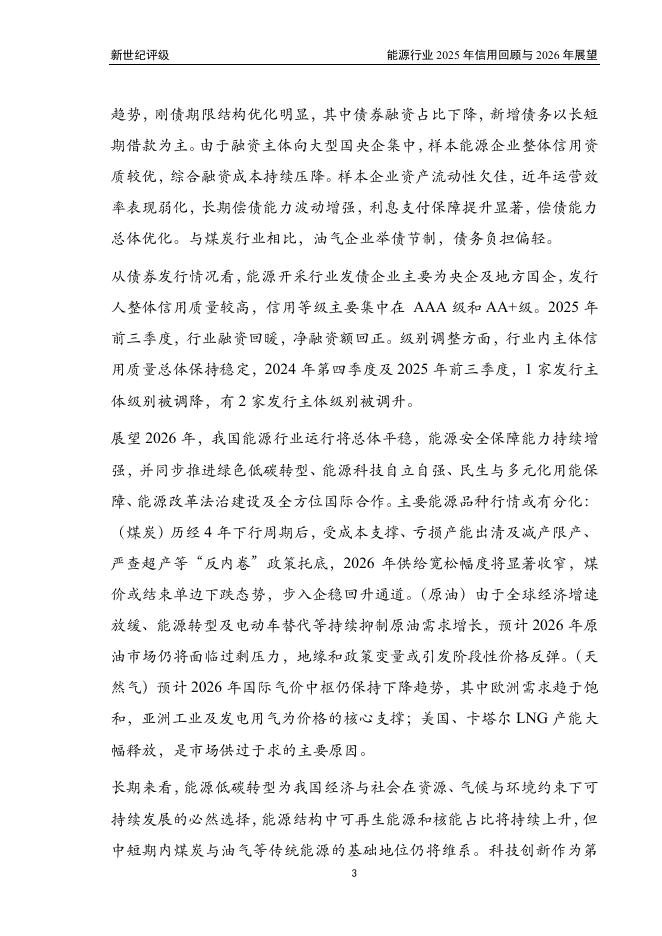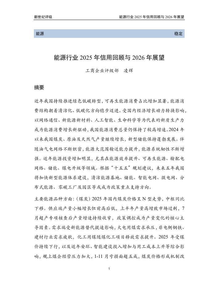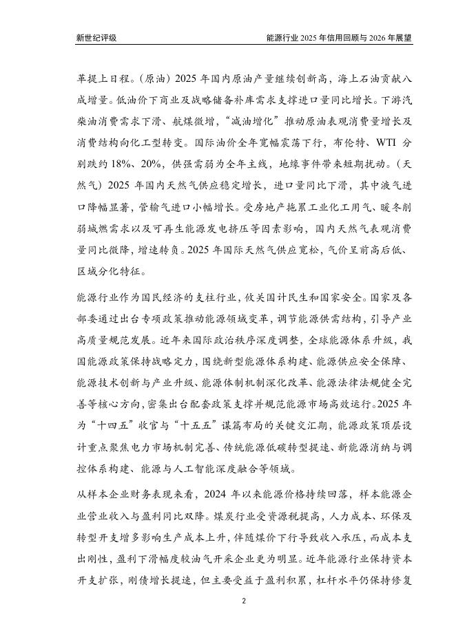 新世纪评级:能源行业2025年信用回顾与2026年展望报告.pdf
