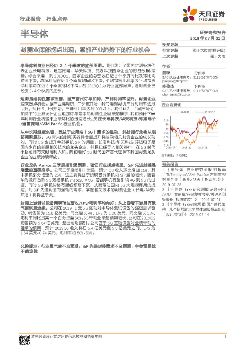 天风证券:半导体行业点评:封测业底部拐点出现,紧抓产业趋势下的行业机会.pdf