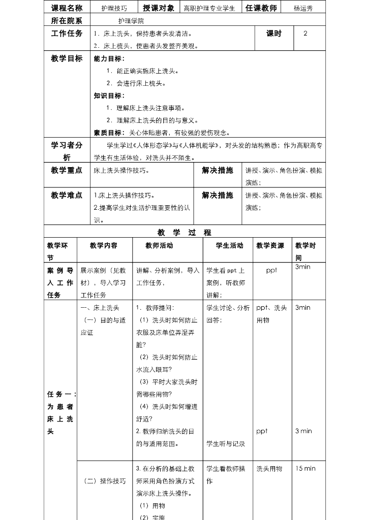 《护理技巧》电子教案-任务二 头发护理.pdf