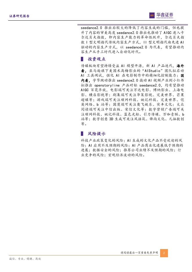 华鑫证券:传媒行业点评报告:Seedance2.0推动AIGC进入卡尔达肖夫指数.pdf