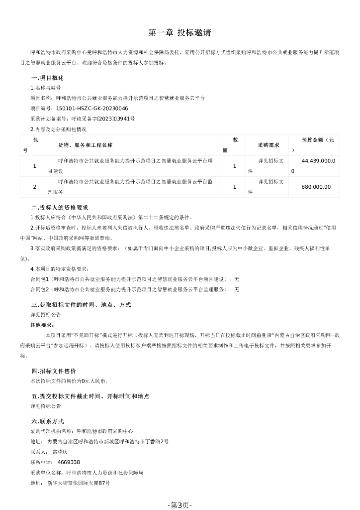 呼和浩特市公共就业服务能力提升示范项目之智慧就业服务云平台招标文件.pdf