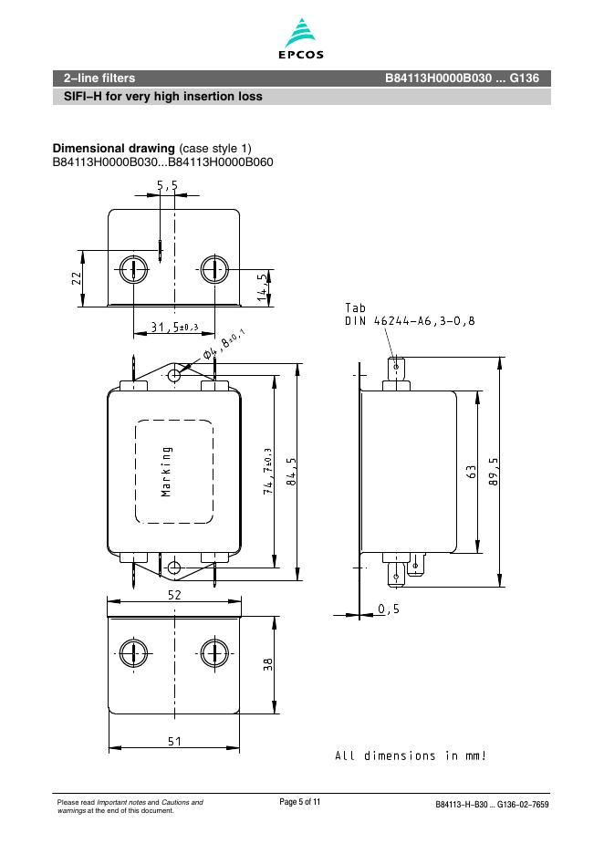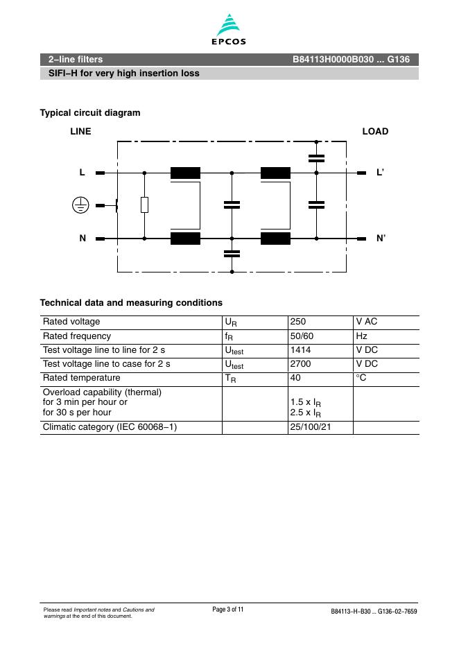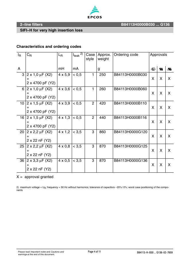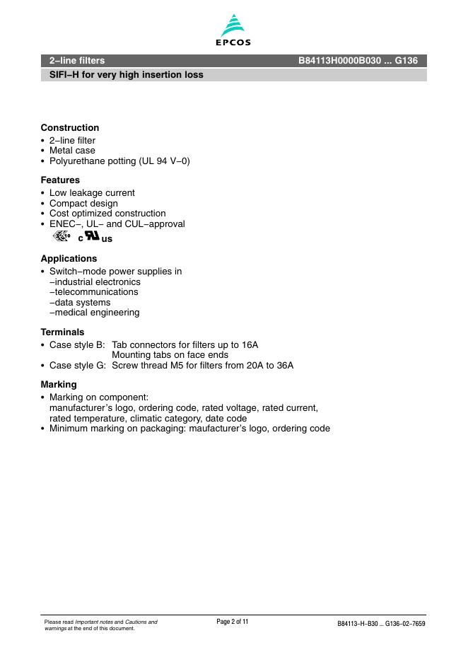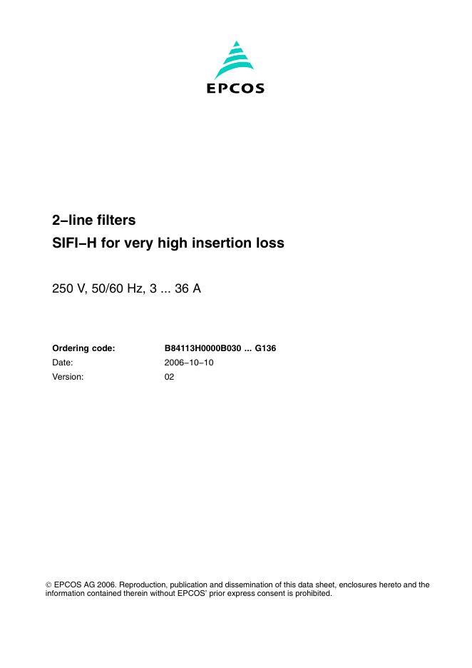 EPCOS 2−line filters SIFI−H for very high insertion loss 250 V, 50/60 Hz, 3 ... 36 A 数据手册.pdf