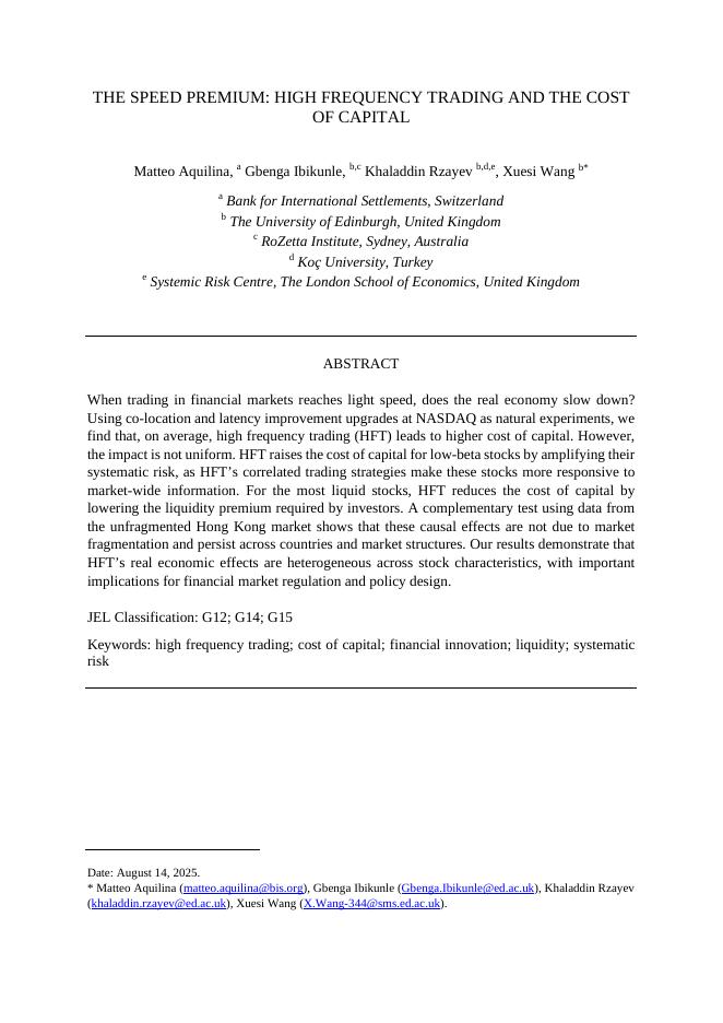 国际清算银行:速度溢价:高频交易和资本成本(英文版).pdf