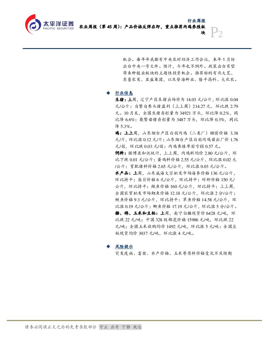 太平洋证券:农业周报(第46周):产品价格反弹在即,重点推荐肉鸡养殖板块.pdf