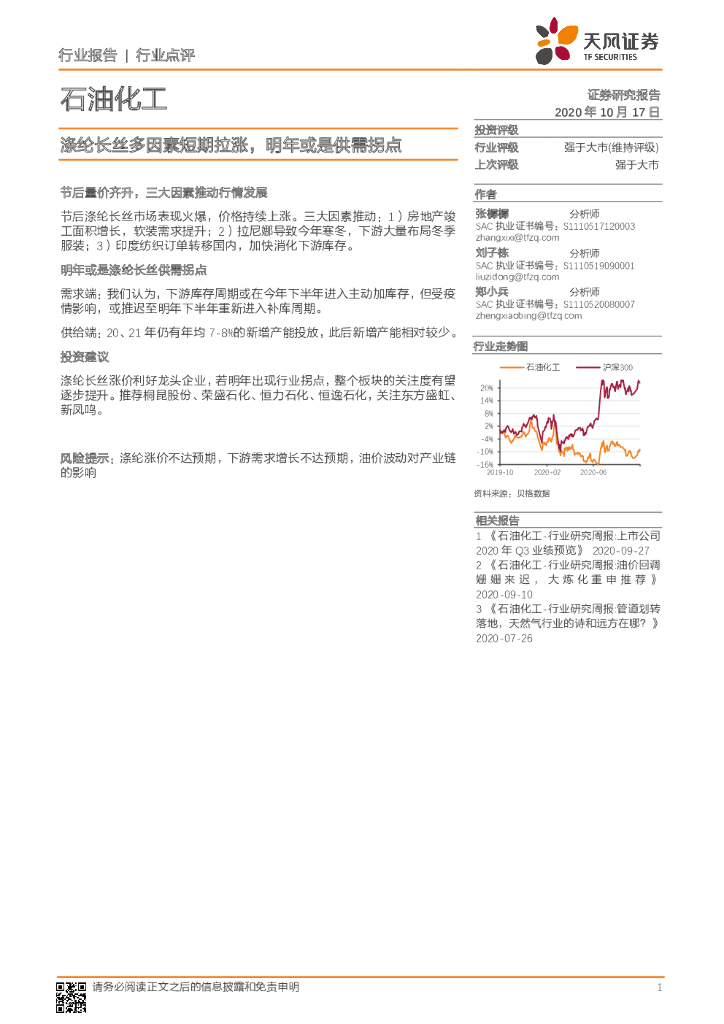 天风证券:石油化工:涤纶长丝多因素短期拉涨,明年或是供需拐点.pdf