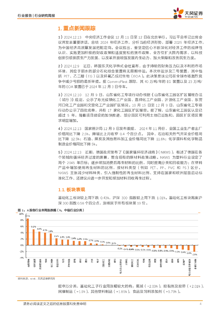 天风证券:基础化工行业研究周报:中央经济工作会议12月11-12日在京举行,甲醇、丙烯酸价格上涨.pdf