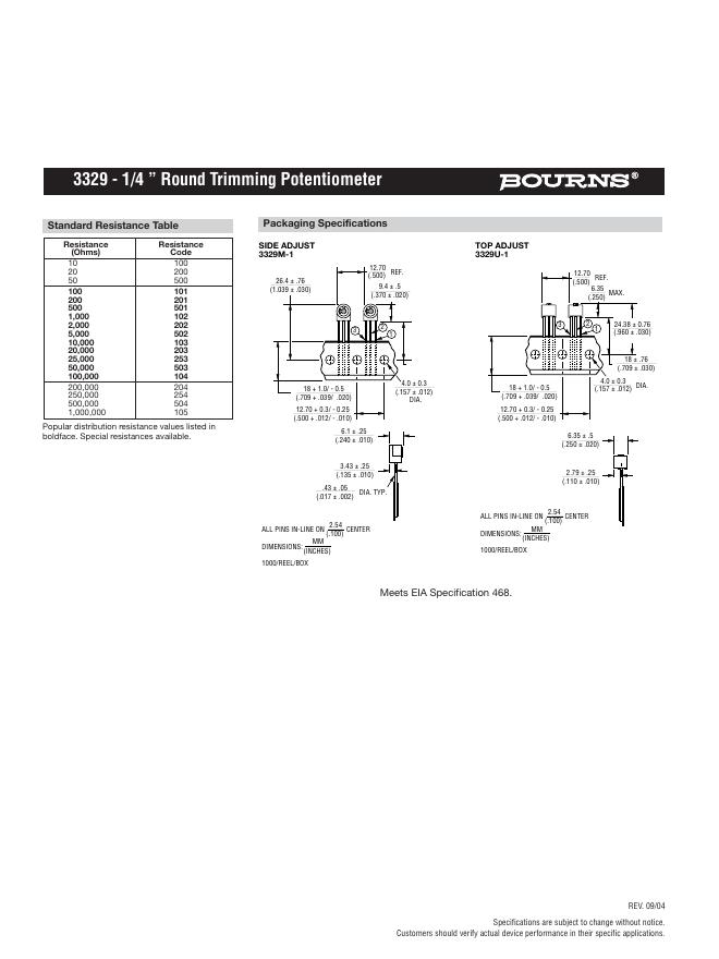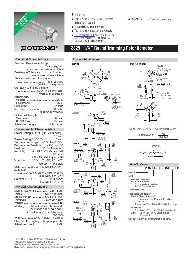BOURNS 3329 - 1/4 ” Round Trimming Potentiometer 数据手册.pdf