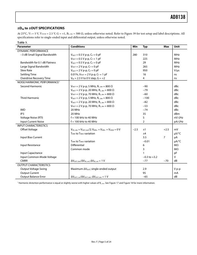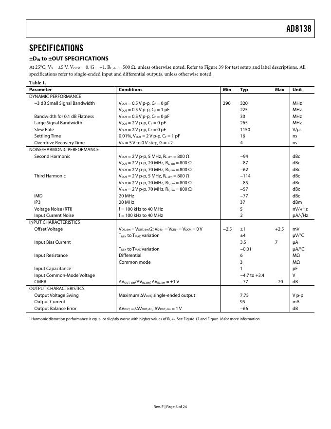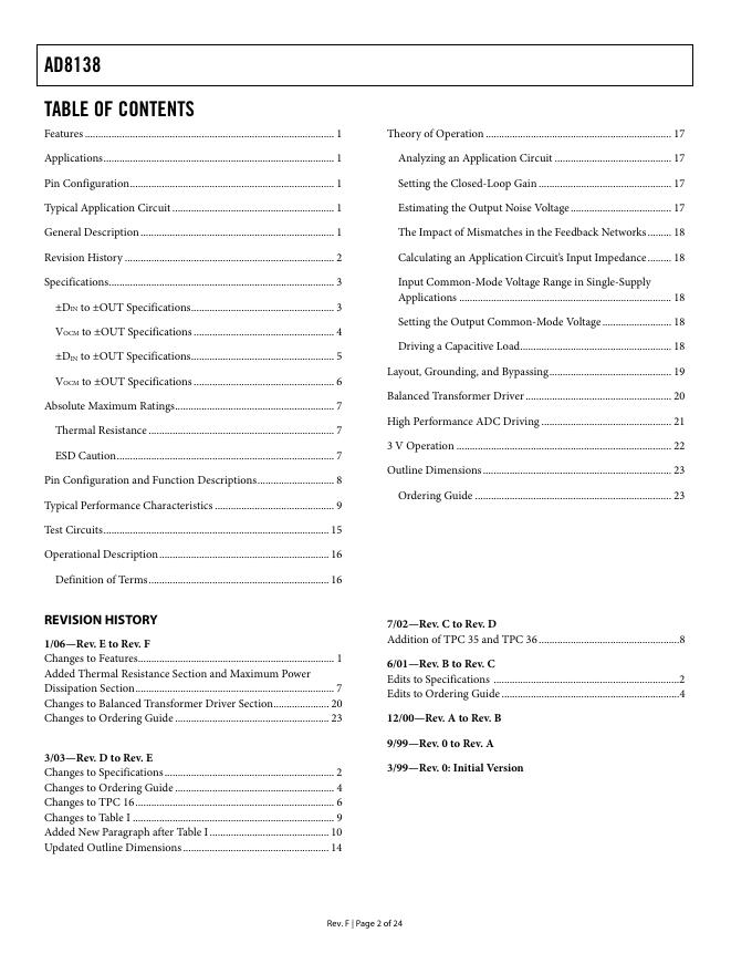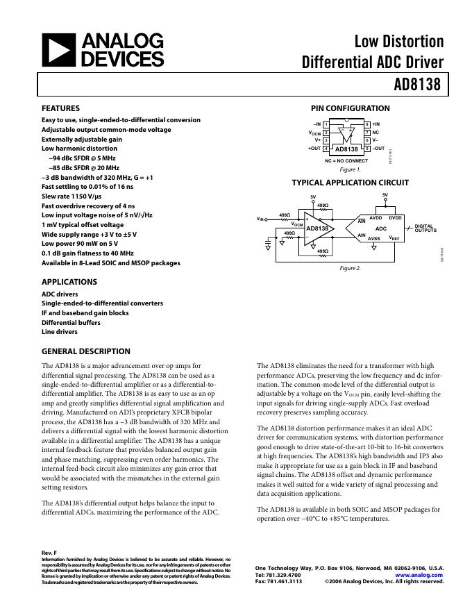 ANALOG DEVICES Low Distortion Differential ADC Driver AD8138 数据手册.pdf