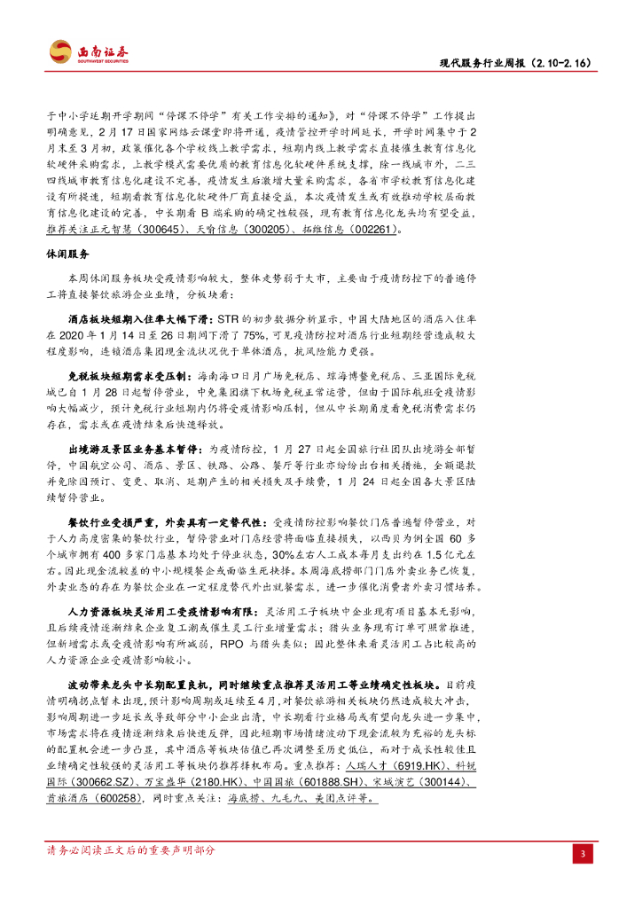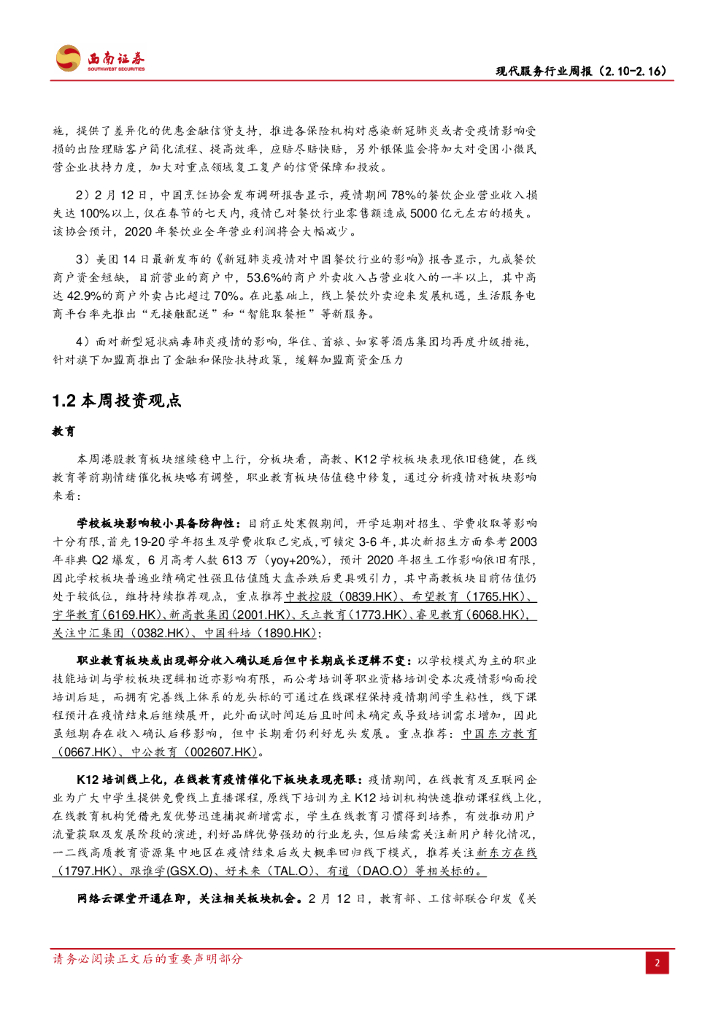 西南证券:现代服务行业周报:网络云课堂开通在即,教育信息化建设有望加速.pdf