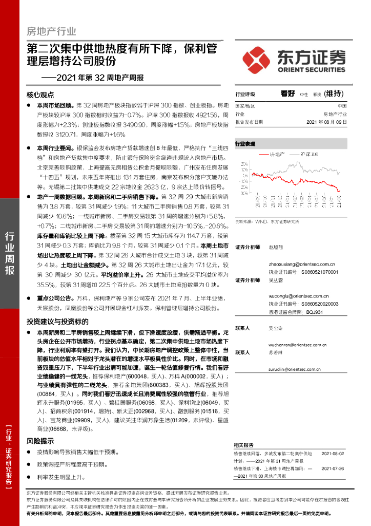 东方证券:2021年第32周地产周报:第二次集中供地热度有所下降,保利管理层增持公司股份.pdf