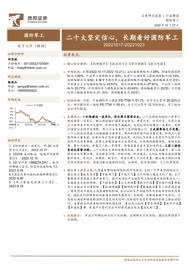 德邦证券:国防军工行业周报:二十大坚定信心,长期看好国防军工.pdf