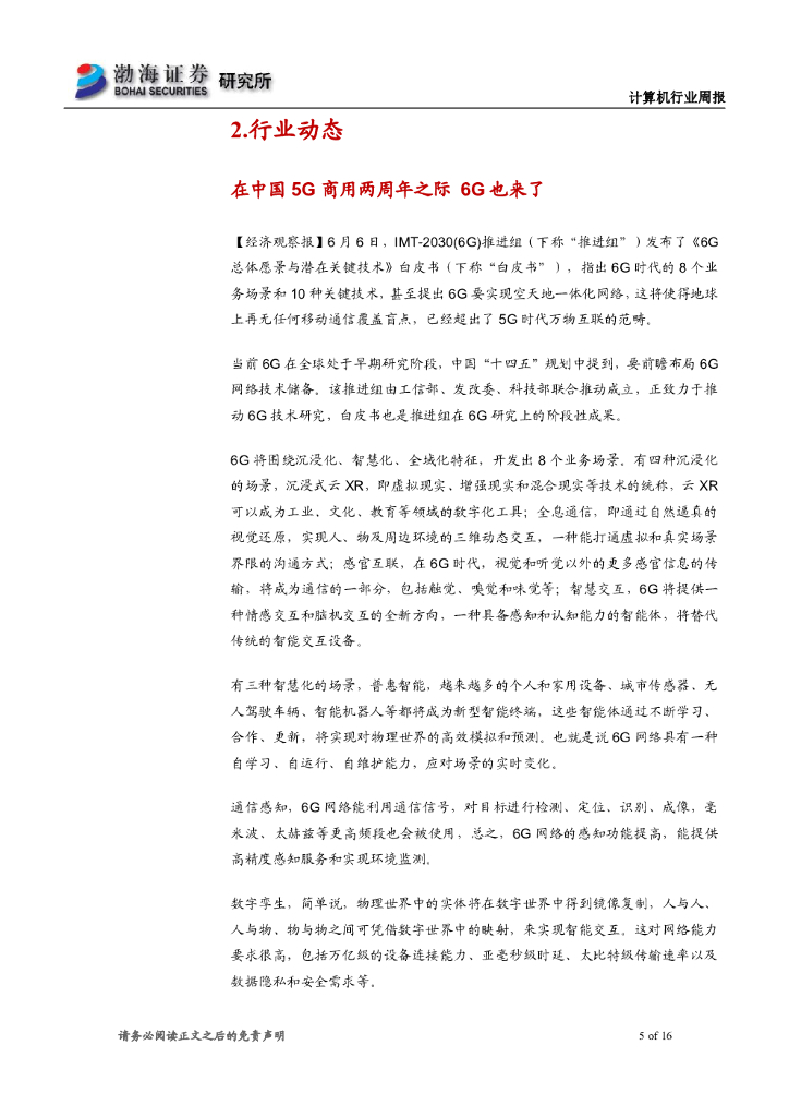 渤海证券:计算机行业周报:鸿蒙2.0正式发布,关注鸿蒙产业链和云计算.pdf