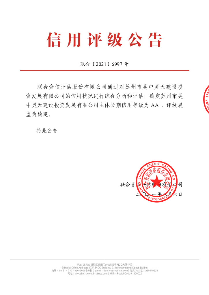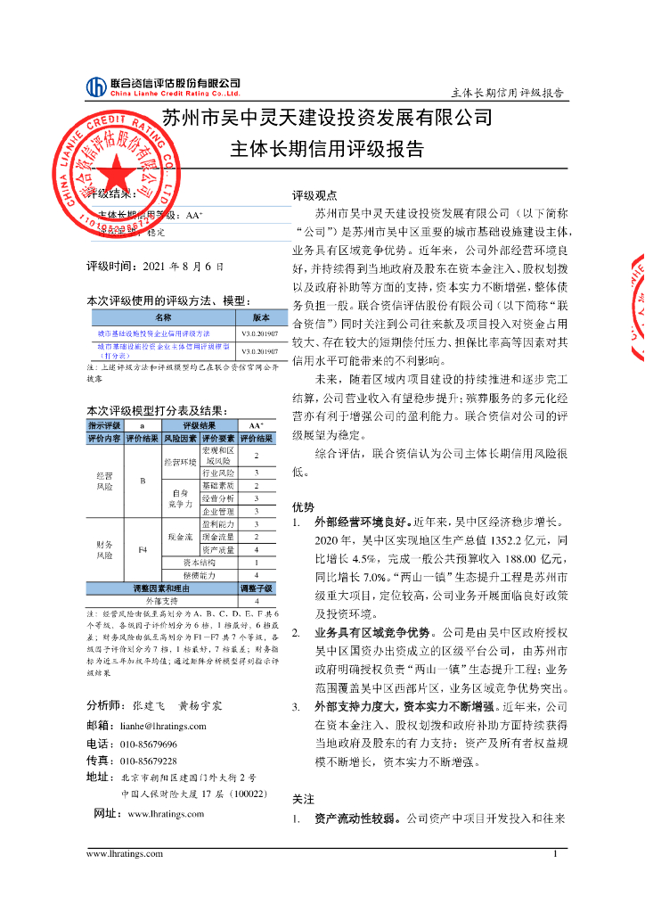 联合资信:苏州市吴中灵天建设投资发展有限公司2021年主体信用评级报告.pdf