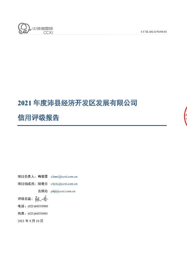 中诚信:沛县经济开发区发展有限公司主体信用评级报告及跟踪评级安排.pdf