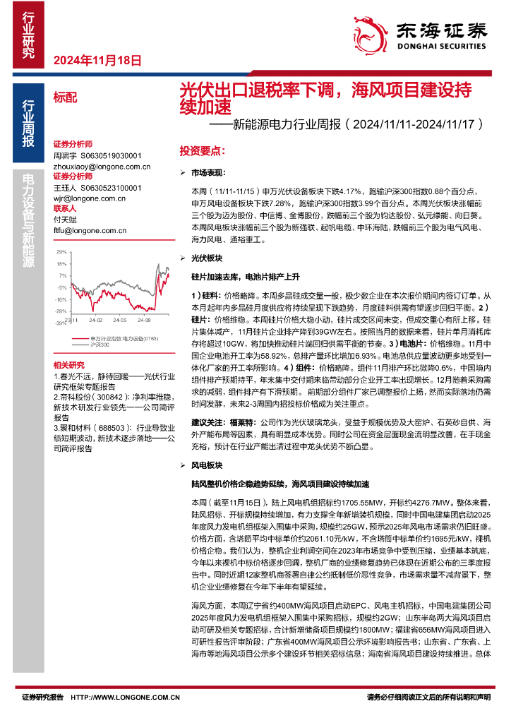 东海证券:新能源电力行业周报:光伏出口退税率下调,海风项目建设持续加速.pdf