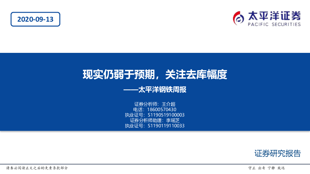 太平洋证券:钢铁周报:现实仍弱于预期,关注去库幅度.pdf