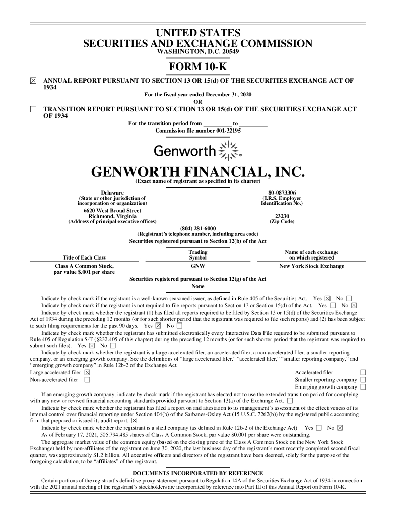 Genworth Financial(GNW)2020财年年度报告(英文版).pdf