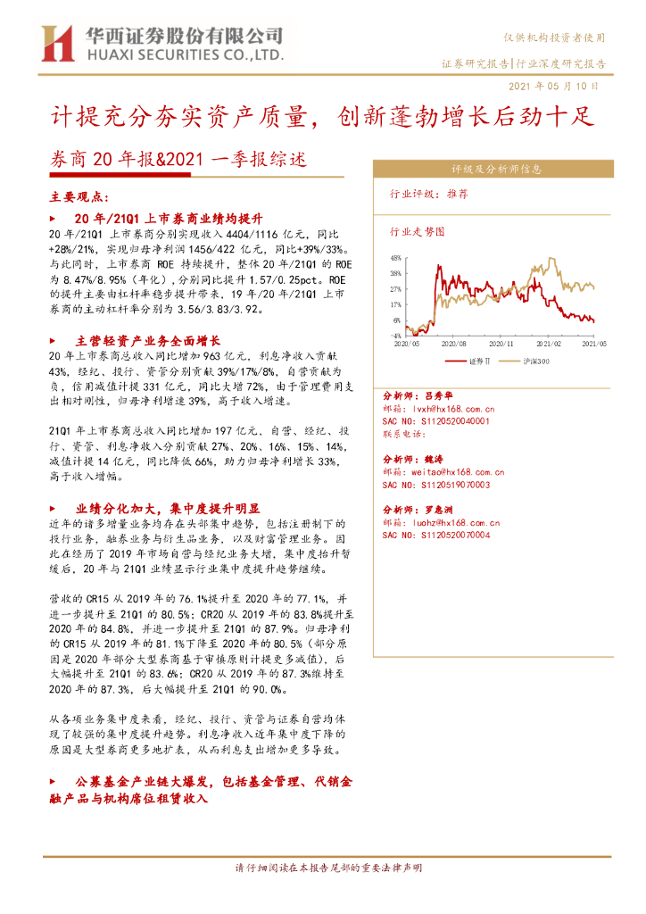 华西证券:券商20年报&2021一季报综述:计提充分夯实资产质量,创新蓬勃增长后劲十足.pdf