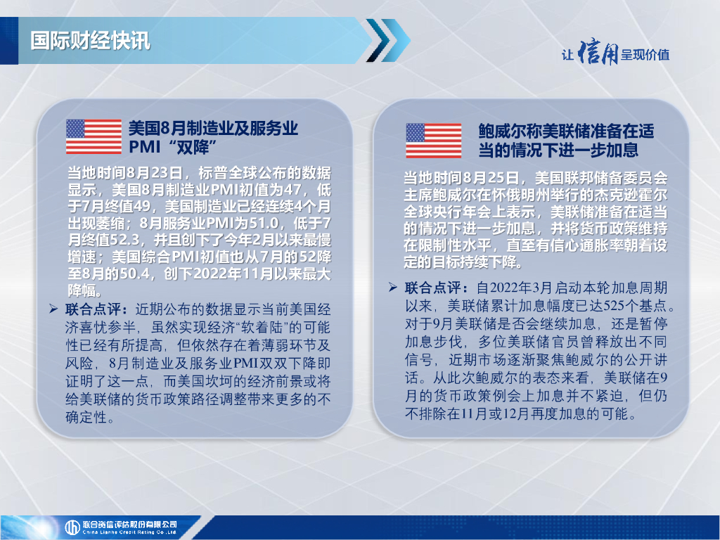 联合资信:欧美8月PMI超预期下滑,鲍威尔表态可能进一步加息——全球宏观态势每周观察(2023年第34期).pdf
