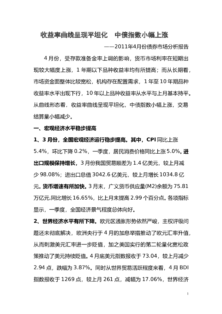 中债研发中心:2011年4月份债券市场分析报告.doc