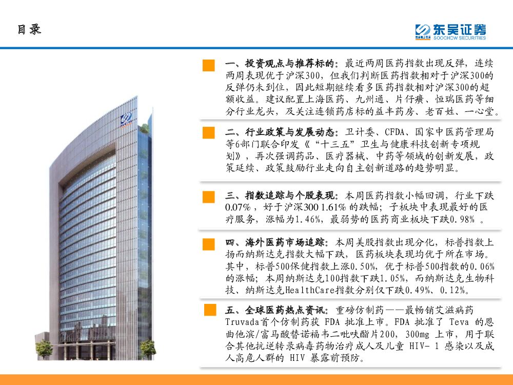东吴证券:东吴医药行业周观点:短期持续看多医药指数相对沪深300的超额收益;中报前建议配置连锁药店、药品流通等医药商业细分行业.pdf