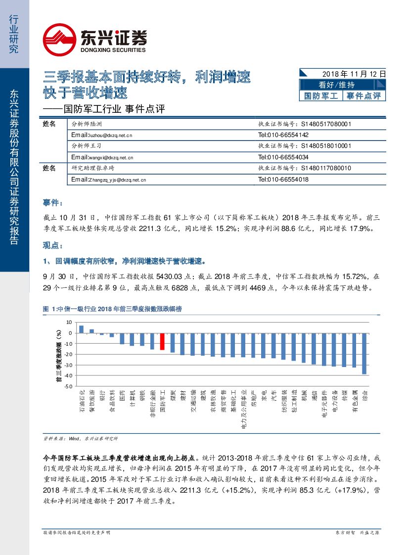 东兴证券:国防军工行业事件点评:三季报基本面持续好转,利润增速快于营收增速.pdf