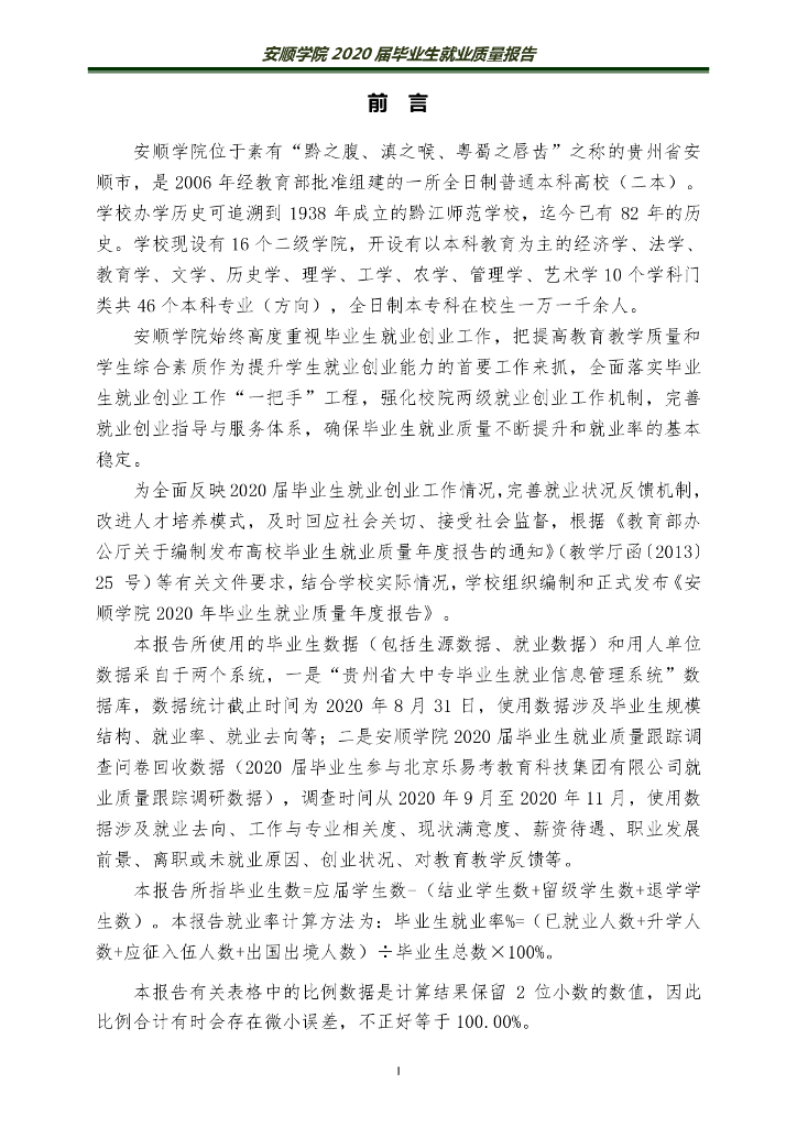 安顺学院2020届毕业生就业质量年度报告.pdf