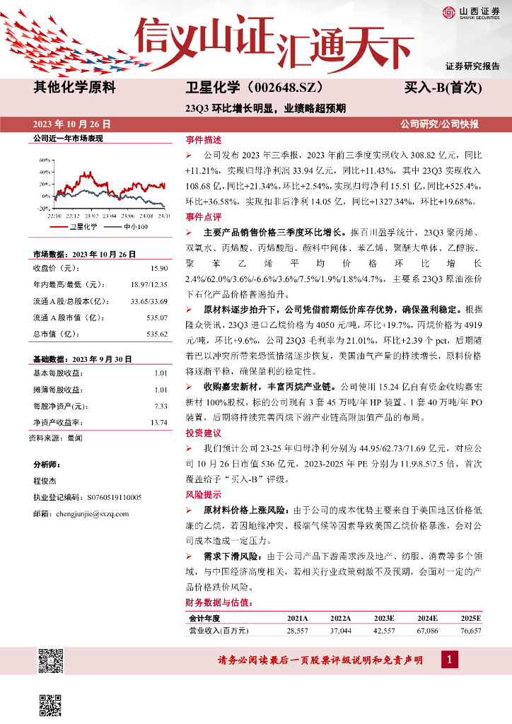 山西证券:卫星化学(002648)-23Q3环比增长明显,业绩略超预期.pdf