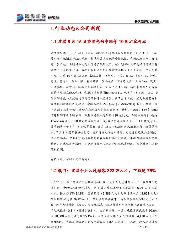 渤海证券:餐饮旅游行业周报:格力地产收购珠海免税 同程艺龙Q1实现盈利.pdf