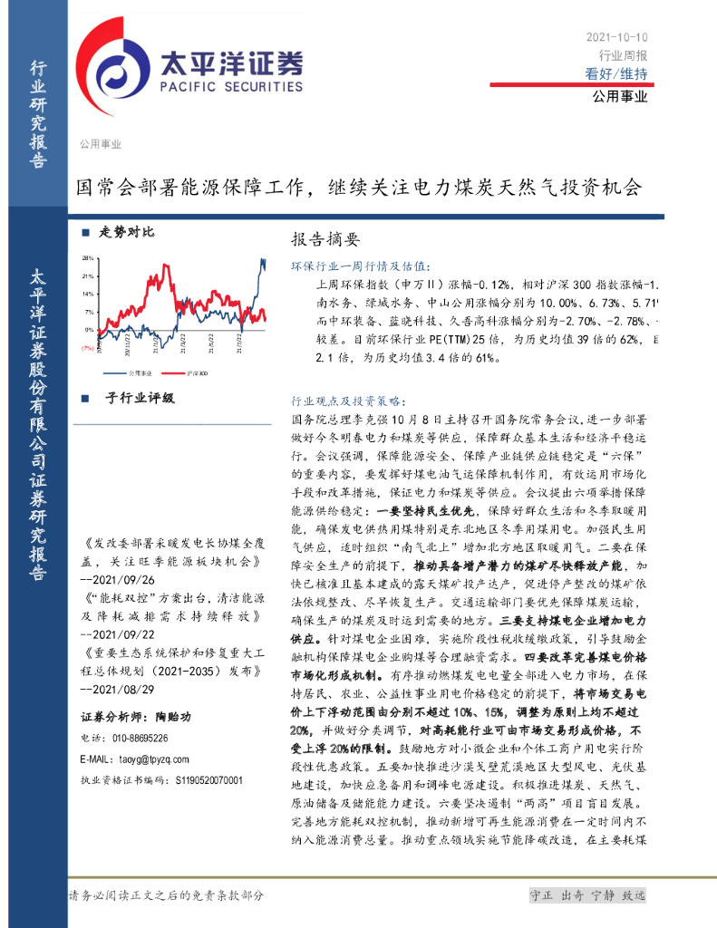 太平洋证券:公用事业行业周报:国常会部署能源保障工作,继续关注电力煤炭天然气投资机会.pdf