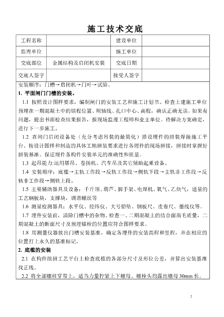 水利水电工程金属结构施工技术交底要点(标准表格).doc