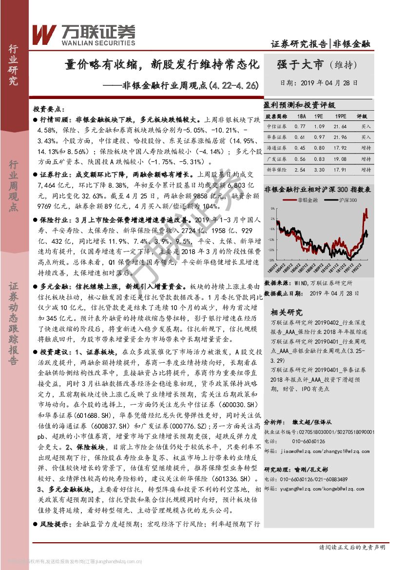 万联证券:非银金融行业周观点:量价略有收缩,新股发行维持常态化.pdf
