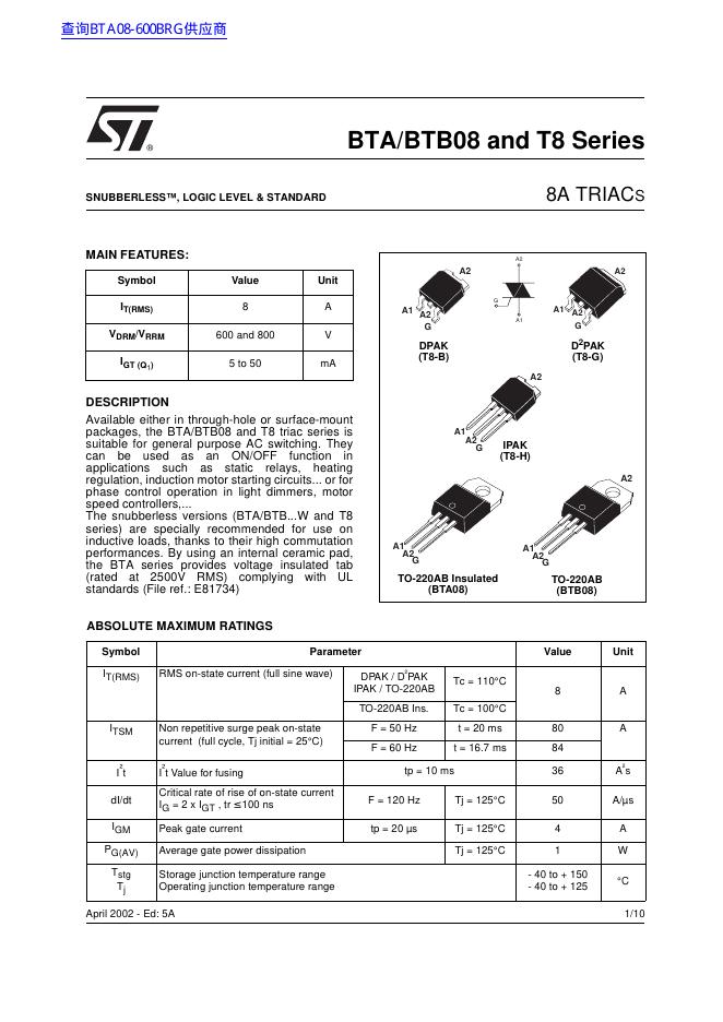 ST BTA/BTB08 and T8 Series 数据手册.pdf
