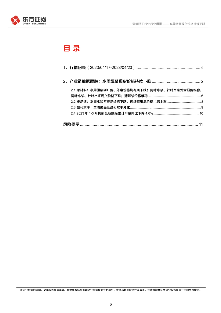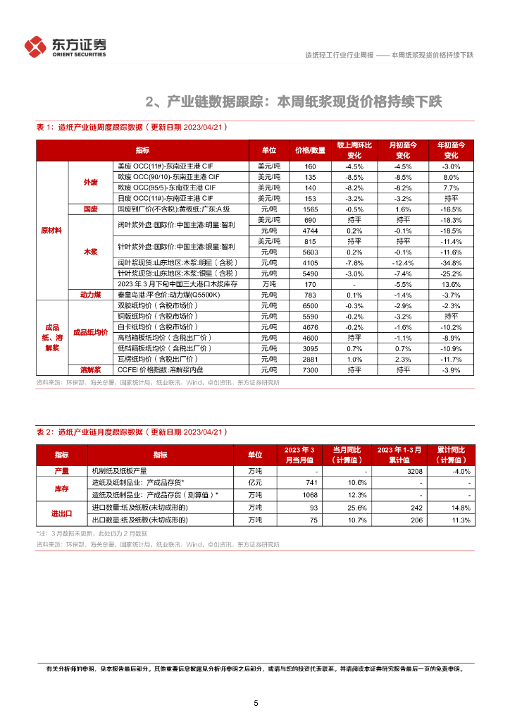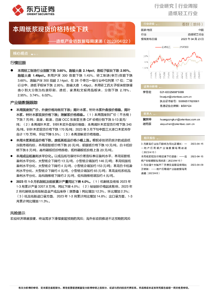 东方证券:造纸产业链数据每周速递:本周纸浆现货价格持续下跌.pdf