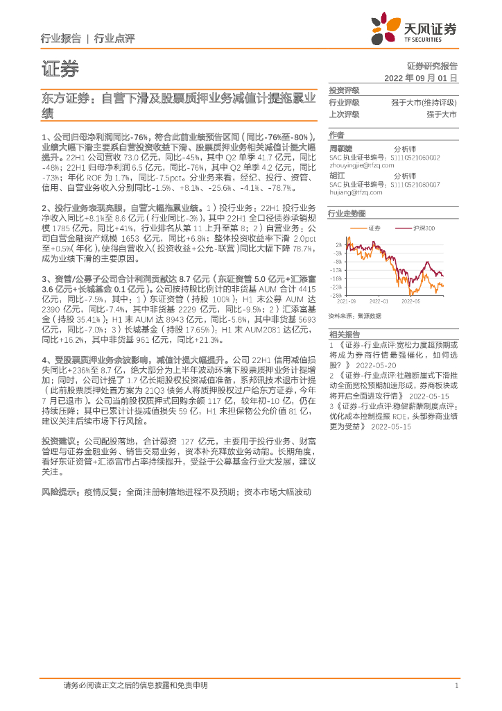 天风证券:证券:东方证券:自营下滑及股票质押业务减值计提拖累业绩.pdf