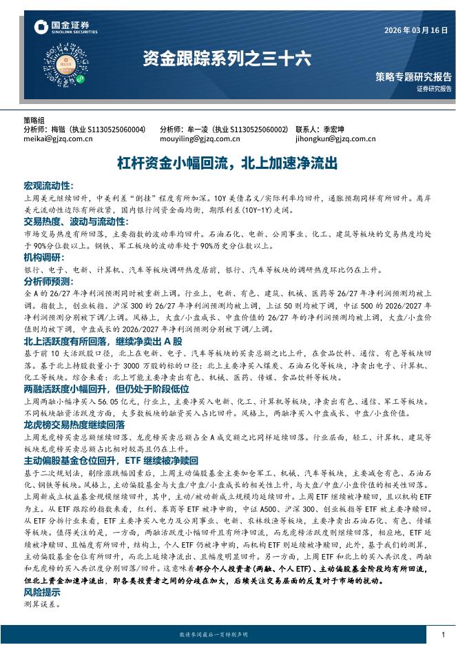 国金证券:资金跟踪系列之三十六:杠杆资金小幅回流,北上加速净流出-260316.pdf
